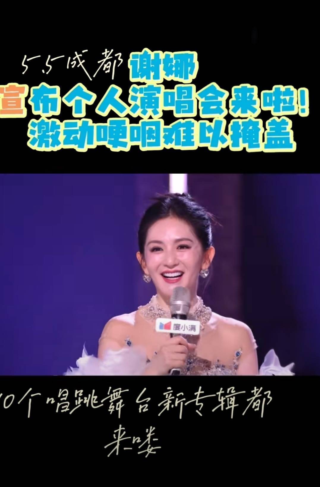 4月11日,谢娜宣布了个人演唱会的消息。她表示,人生就是去造梦和完成梦想的过程。虽然大家都知道她是主持人,但在做主持之前,她是一名演员;做了主持之后,她心里又多了一个成为唱跳歌手的梦想。她曾发过几张专辑,并为了这个梦想来到《乘风》,认真训练,积累舞台经验。今年,她终于有机会实现这个梦想。她的演唱会名为《快乐万岁·我们的青春》,将于2026年5月5日在成都举行,预售时间为4月15日中午14:00。筹备个人演唱会非常不易,除了专辑里的歌,她还准备了十首唱跳舞台。每次高强度练习后躺在床上,她都会忍不住想自己是不是太疯狂了,这一切是真的吗?谢娜一直很珍惜每一次机会,只要决定去做一件事,就会拼尽全力做到最好。也许她不是唱得最好的,也不是跳得最专业的,但她会拿出百分百的诚意,让每一个来到现场的人都觉得值得。